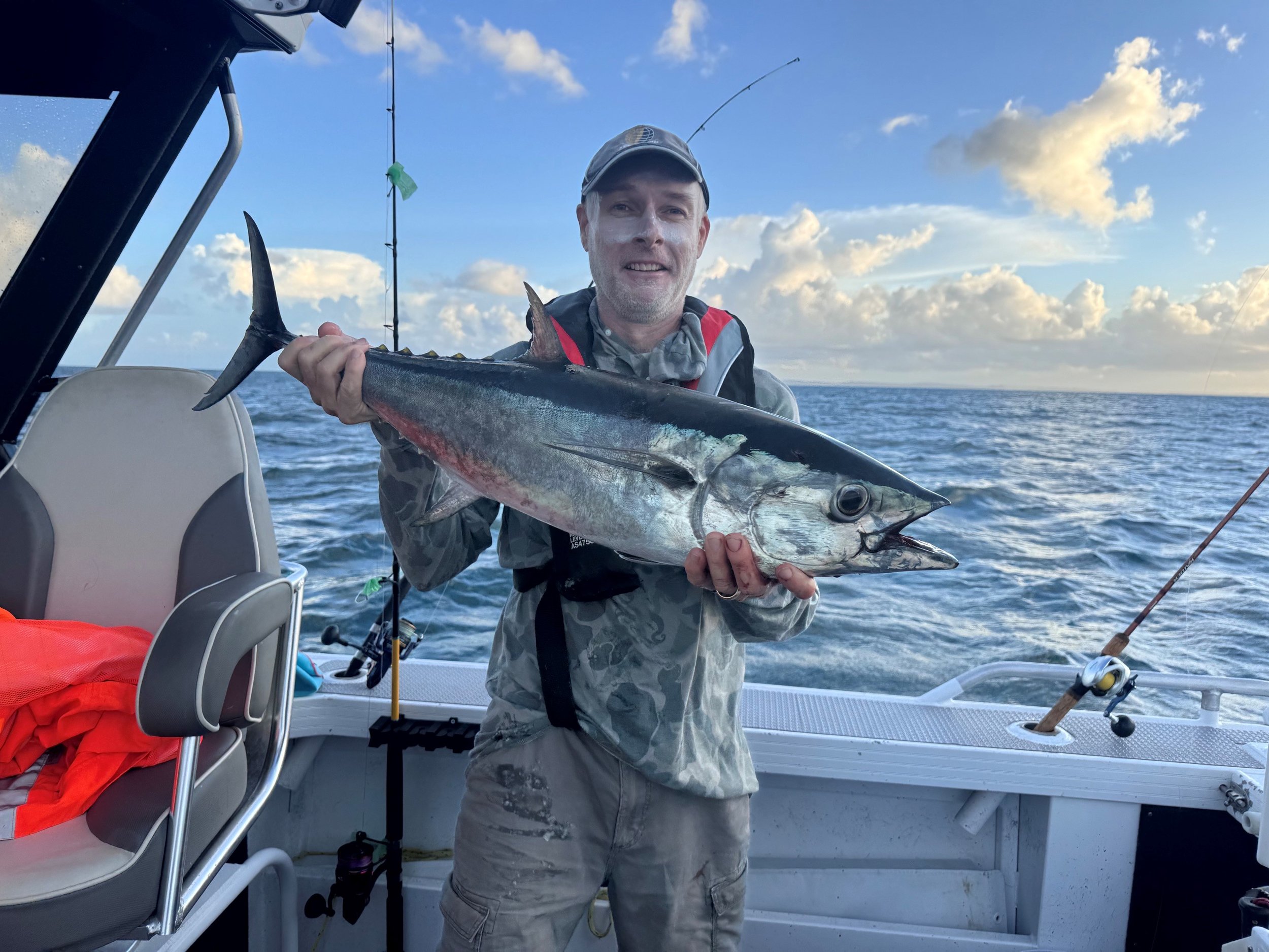 Whilst the fishing in March has been a bit on the quiet side due to weather a few of us did manage to sneak out. A big thanks to Derek for talking about the recent marlin trip on Luna; for those who missed it the trip report and video is HERE. The March Offshore Attack was cancelled however a couple of boats managed to brave the conditions for the Inshore Attack. Blue Pearl did an overnighter which produced a nice haul of sand crabs from the bay, and Hydrostatic managed a cracking long tail tuna, which was well deserved after all the crazy chasing around the bay. And a reminder to Jason and others to measure your catches for the annual competition – thanks to Conrad for the update who’s leading the various categories.